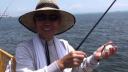 9人のメンバーとゲスト1人(東野さんの4歳のお孫さん)が、炎天下、日焼けをものともせず休憩もとらずに頑張りました。松下、須藤さんから手ほどきしてもらい、全くの初心者4人も釣りを楽しみ、釣りの魅力を実感しました。