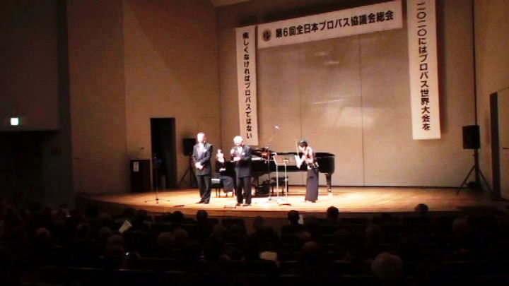 このたびは240名の皆さんにご出席いただきありがとうございます。 今回の大会には遠くは北海道、九州からお出で頂きました。全日本プロバスを前進させようと頑張っていた加藤武氏が道半ばで急逝された後を継いで、私と森山幹事長とで全国30数ヶ所のクラブにお邪魔して皆さんにお会いして来ました。