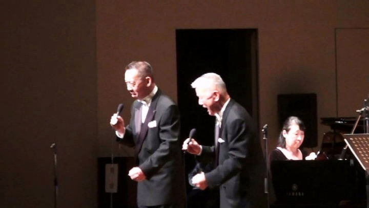 当倶楽部会員の平山秀樹氏の司会で、出演者のバイオリニスト、ピアニスト及び会員の平岡英夫氏が紹介された。ピアノとバイオリンの伴奏による平山、平岡両氏のデュエット、平山氏の独唱、会場全体に響き渡る歌声を堪能した。また、プロの奏でるバイオリンの優雅な音色に聞きほれた。