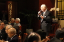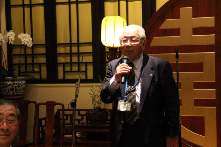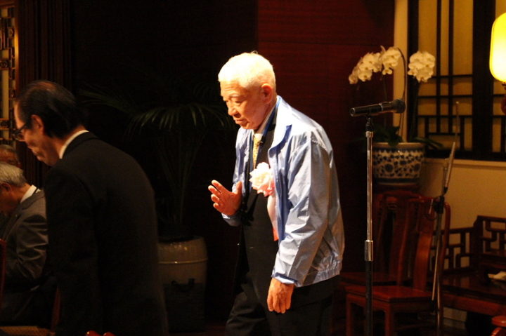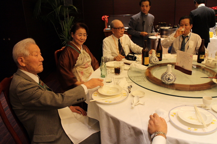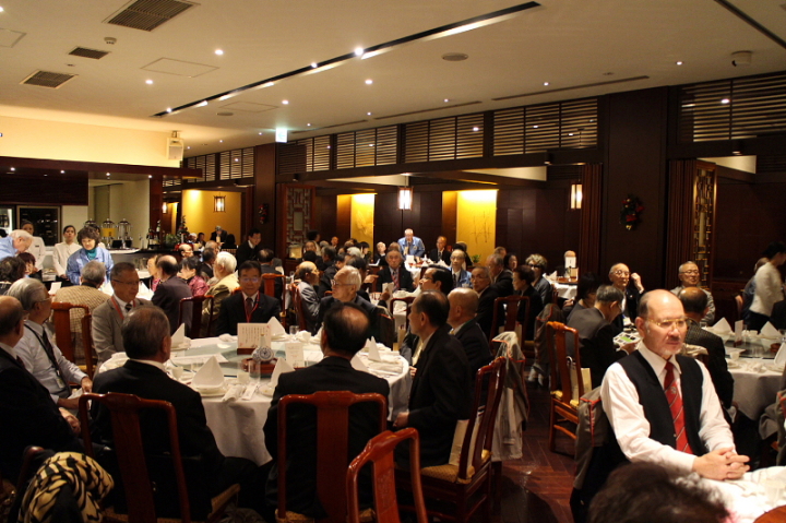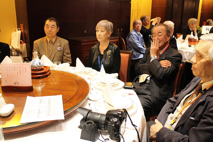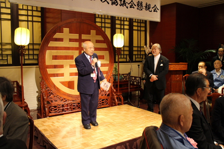 会場:中華街「萬珍楼」当倶楽部会員の岩城孝子氏の司会で開宴し、最初に全日本プロバス協議会 中村實新会長が、240人(2階200人、3階40人)の参加者に歓迎の辞を述べ、青木実行委員長が中華街の話などをしながら、萬珍楼社長を紹介。社長の挨拶のあと、当倶楽部の最高齢会員 加藤義一氏(93歳)元会長を紹介。矍鑠たる挨拶に一同敬服の体であった。
