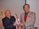 パーティ 当番の横濱プロバスの加藤氏の司会でまず代表幹事の関口氏から、本日5クラブから28名と大勢参加し、コンペの進行も全員の協力により大成功だった旨の挨拶があり、また、今回から参加した横浜グリーンと川崎西、両クラブの紹介とメンバーの自己紹介があった。 続いて、当交流ゴルフコンペに優勝杯の寄贈があった。寄贈者である横濱の青木氏からは、まず昨年11月23日の全日本プロバス協議会総会の協力への実行委員長としての謝辞があった。そして、今後、大のカップは優勝クラブの持ち回りで、この交流コンペは年間2回位の開催をお願いしたいし、優勝者に贈呈するレプリカ(小カップ)も2年分用意してある旨述べた。 ゴルフは「うんどうかい」です。「運」と「道具」が良い。「かい」は「回数」をたくさんやる。うんどうかいですから、皆さん是非優勝してください。・・・ |