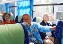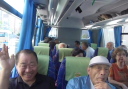 各幹事は7時20分集合して、コンビニに予約し冷やしてある飲料水をバスに積み込んだ。張り切って7時前に来たM幹事もいれば、8時5分前のS氏まで、参加者19名(直前に、2名不参加)が揃い、倶楽部ブルゾンを着用して、8時に予定通り出発。