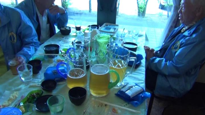 | 工場見学の後、11時半から、昼食はパーク内の地ビール&レストランで。ここでちょっとしたハプニング。M幹事がウエイトレへ注文した際、4種類の地ビールの依頼内容を店側が誤解したため、4種類のピッチャーが各テーブルに出てきた。12時半に食事は終了予定だったが、30分延長して飲みに飲んだが、飲み残しが出たのは残念だった |