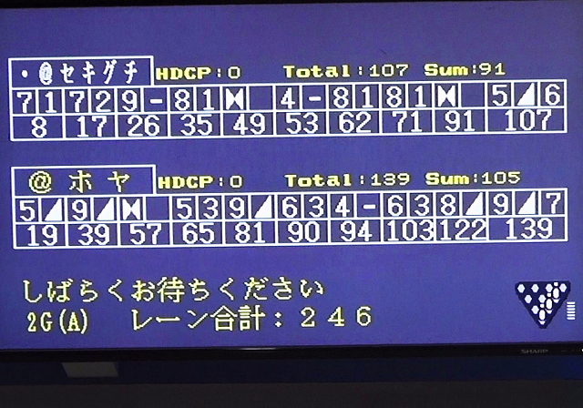 今回は、メンバーの参加が過去最少の2名(保谷、持田)でプレ一しました。スコアは、保谷さんが2ゲ一ム中、最初のゲ一ムでダブルを出し158点で本人の過去最高点でした。 終了後、現地で関さんと待ち合わせをして、近くの居酒屋で懇親会をしました。次回はプレ一をされない方々も懇親会へご参加下さい。