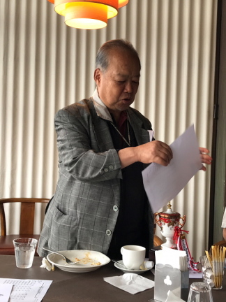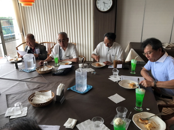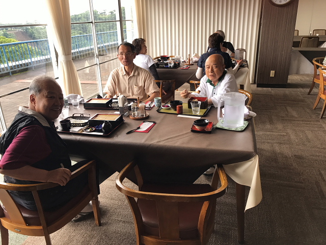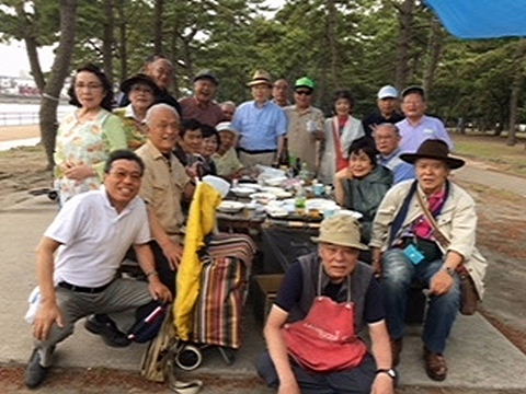 11時の開始頃には会員が24名集まり、ボ一イスカウト仕込みの二人のシェフの料理に堪能しながら、めいめい好きな飲み物で喉を潤し会員間の懇親を深め大盛況であった。