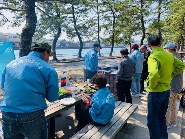 当日は昨日の雨が嘘のような青天、風はあったが温かい行楽日和で、バーベキュー場の桜は7~8分咲きだった。我々グループのバーベキュー炉周辺には、利用者もなく閑散としていたので、心置きなく歓談し、歌も飛び出すなど大いに笑い興じた一日となった。 樋口 海山同好会世話人 記