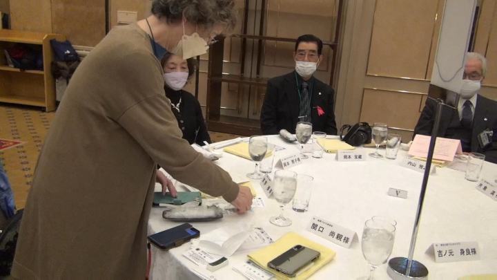 | 北九州の古賀会長から八王子PCの田中信昭氏へ会長引継ぎがあり、当会の岩城孝子全日本理事が新副会長に就任しました。コロナ禍の中、4年間ご苦労された古賀会長から、幻に終わった五所川原大会関係者への謝辞があり、いずれの日か開催実現の期待が述べられました。 |