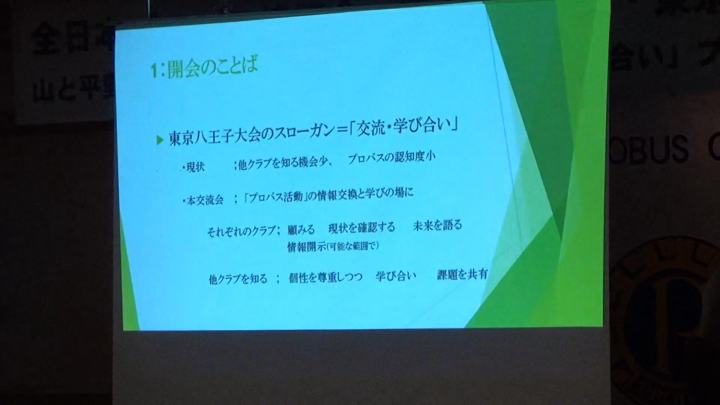 | 交流会で八王子、松任、びわ湖大津の3PCから活動報告があり、会員高齢化と会員数の減少課題が提起されました |