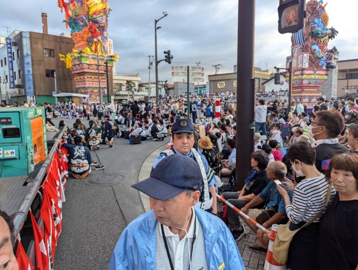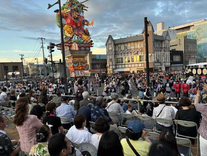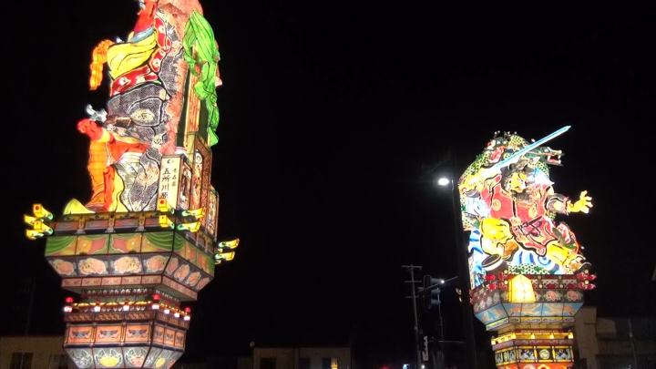 18時30分 懇親会後、五所川原市内の立佞武多会場へ移動して特別観覧席にて見学(18時から21時)