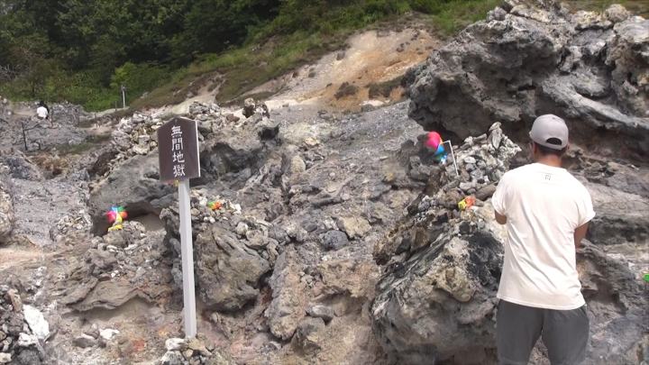 9時から10時 霊場恐山を参観。「宇曽利湖(うそりこ)を取り巻く白砂の浜は極楽になぞらえられ、硫黄の噴出する岩肌一体は地獄とされ、信仰と祈りの霊場と伝えられてきた」との解説があった(久保田71歳のバスガイドさん アレーと思いましたが今までのガイドさんの中で一番我々を飽きさせない お見事)