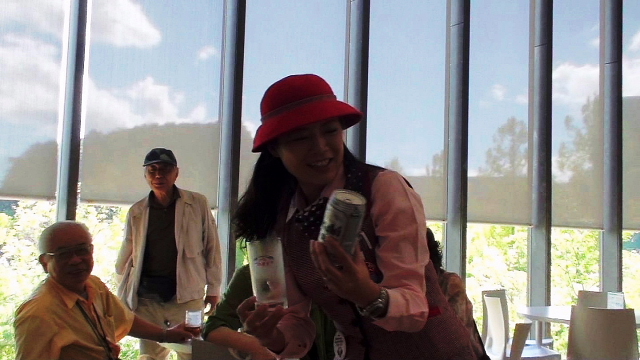 | 総務部長の挨拶 と工場の概要説明を聞くが早くビールが飲みたそう 案内の細野さんにビールの美味しいつぎ方を教わる | |||