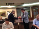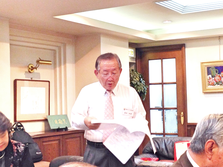 ① 体調を崩し、しばらく会合を欠席していた荻原氏が元気な姿を見せ挨拶した。 |