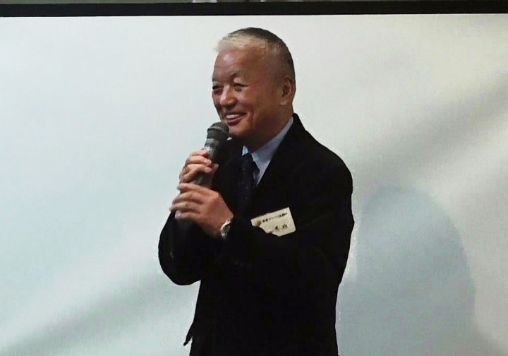 元気に司会する冨永例会委員長 |