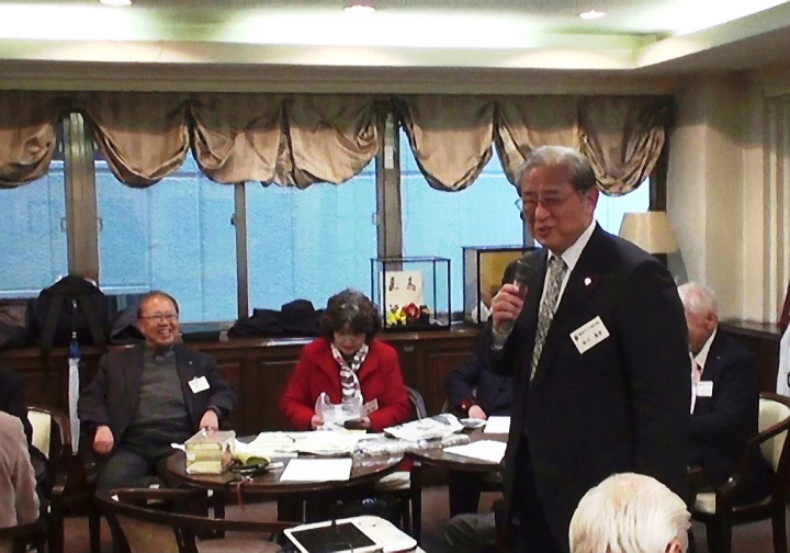 会長挨拶 今から56年前の4月10日は祝日になった。今上天皇、皇后陛下のご成婚の日だった。この日を目指してテレビが普及し、前の晩まで、電気屋さんが大忙しとの話だった。このおめでたい結婚記念日を前にして、お二人は昨日一昨日と太平洋戦争で激戦地となったパラオ諸島へ慰霊の為に、老躯にムチ打って、日本国民に代ってお参りをしてくださったことはテレビや新聞でご覧になった通り。パラオということを久しぶりに聞いた方もいると思う。横浜の山手に横浜学園があるが、そこの先生に中島敦がいた。若くして素晴らしい文章を書き、もっと長く生きていれば、立派な小説をもっと書いたに違いない。彼は学園に居る間に結核になり、転地療養先に選んだのがパラオ諸島だった。そこで彼は小説も書き、海洋生物の研究もしていたが、齢37歳で亡くなった。学園では有名な彼を偲んで毎年追悼している。横浜にわずかな期間籍を置いて、横浜の女学生を指導したという人と、パラオとの関係をあらためて思い出した。天皇・皇后両陛下の慰霊の旅については、新聞、テレビにもずいぶん詳細に報道されている。今日はたまたま第160回の例会が、お二人のご結婚記念日にあたったということで、多少なりとご紹介させて頂いた。今日もいろいろあるので、十分なご討議をお願いしたい。 |