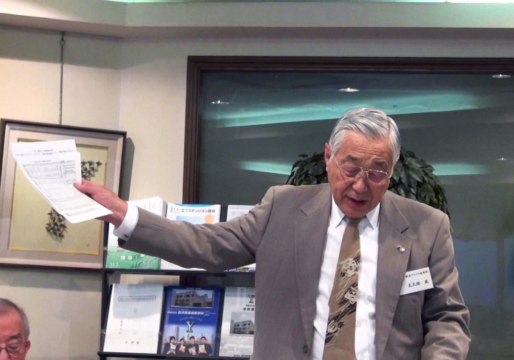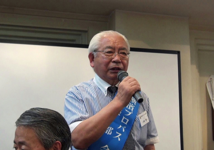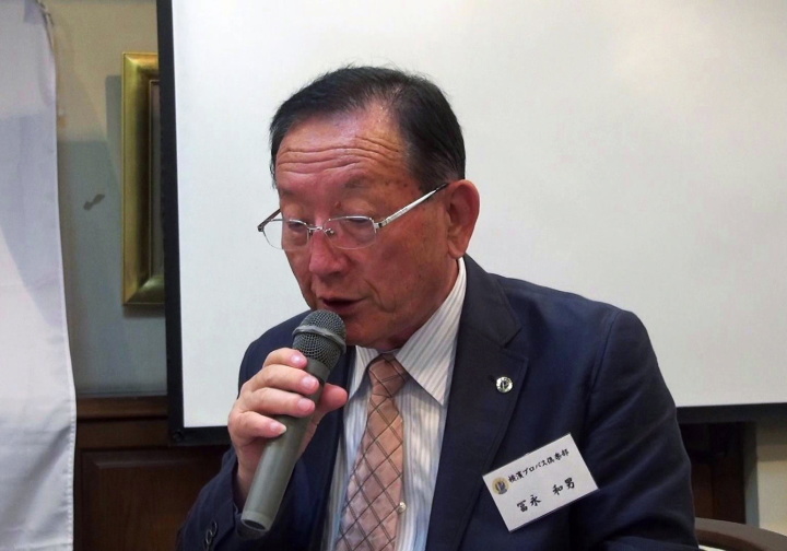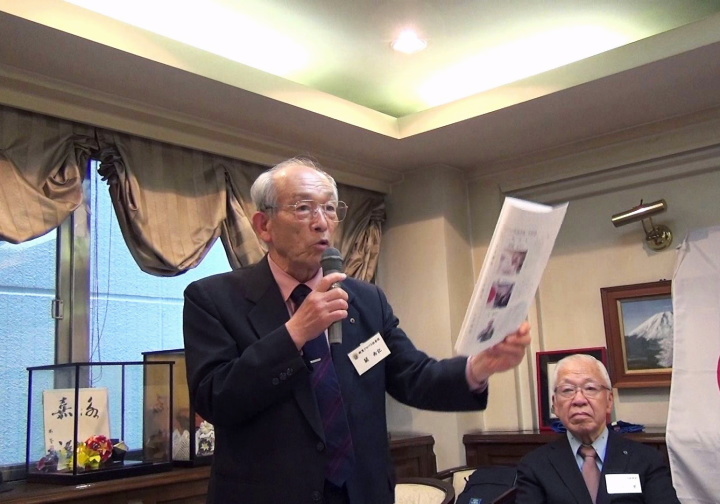 この会は2001年1月に設立。その当時の発表が高齢社会の先取りということで話題となり、第一回の総会に集まった方は35人いた。初めは何をやっていいかわからない、一人去り、二人去り、20人を切ってしまいこの先どうなるかと思っていたが、亡くなった加藤武氏が一生懸命会員を集め、しかも全日本プロバスの会長を引き受けるまでに至った。私は何らかの形で、この会に加藤氏の名前を残したいと思っている。皆さんのご努力で会員数は、今35名。益々この会が発展することを望みます。