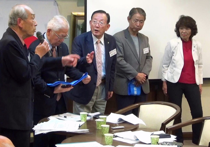 役員候補について拍手で承認。 新会長が選ぶ会計監査に束野氏指名。参遊会会長は理事として引き続き松下氏。副会長に岩城氏。名誉会員を加藤義一氏に委嘱 |