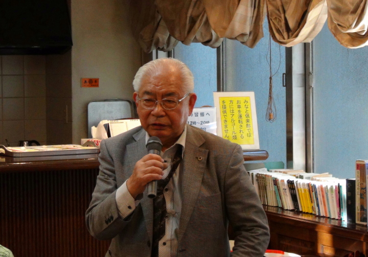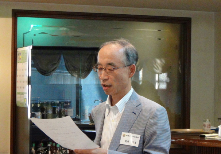 本来は岩城副会長が挨拶する所 所要で帰られましたので 冨永幹事が占めました