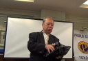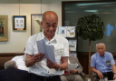 3誕生月お祝い品贈呈 記念品贈呈 岡部正久会員委員長