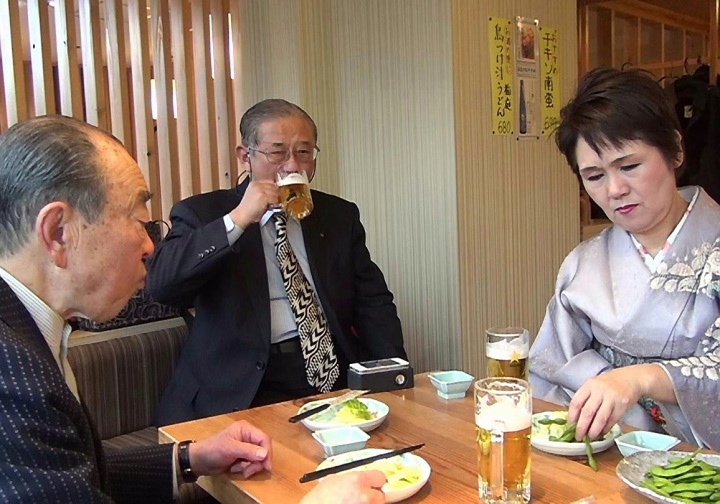 青木会員 : 還暦は中間点。人生の折り返しである。 長寿の秘訣は、人と会う(友を持つ)そして笑いのある人生である。 孤独が良くない。皆さん元気で長生きしましょう。