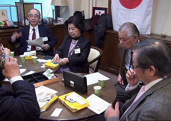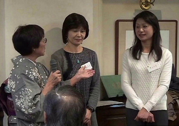 森山全日本幹事長 本日、福島より3名の方がお見えになりました。根本フクさんが当倶楽部の平野会員と小学校