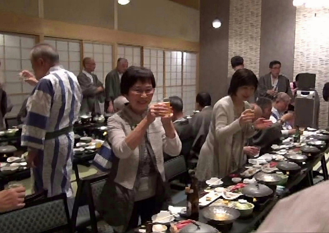 | 午後6時30分から根本さんの奥様、草薙さんが加わり宴会が