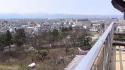 午前10時06分鶴ヶ城へ向けて出発した。 到着後、ボランティアガイドの案内で説明を聞いた後、天守閣内の見学は各自で見学した。 特に最上階の展望層は、雄大な会津の景色と
