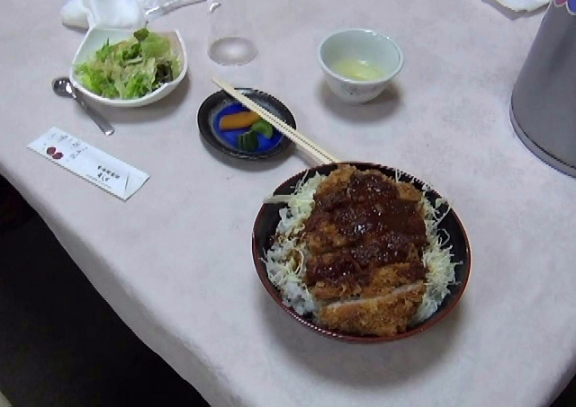| 鶴ヶ城見学後、昼食をとるため 会津若松駅近くのお寿司屋でソ一スかつ丼をいただいたが、すごくボリュームがあり持て余している人も見受けられた。 |