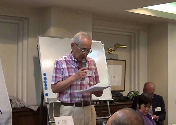 昭和16年の生まれです。小学校の時疎開し、福島に行っておりました。先月の移動例会のこと、6月のプロバスクラブ設立に向けてのこと等々、福島の方々から御礼がありました。 |