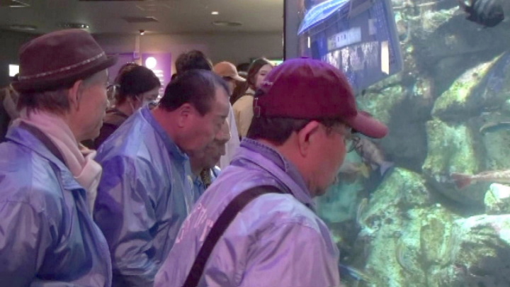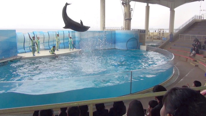 10時半から新江ノ島水族館で相模湾の2万匹の魚を鑑賞、11:00からイルカショー、11時半からペンギンショー、12時から魚心(uogokoro)ダイビングショーを観覧。その後、例会場へ移動。