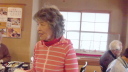 例会食事会の真っ只中 青木元会長に話し掛ける 丸だい仙水の女性STAFFがいました