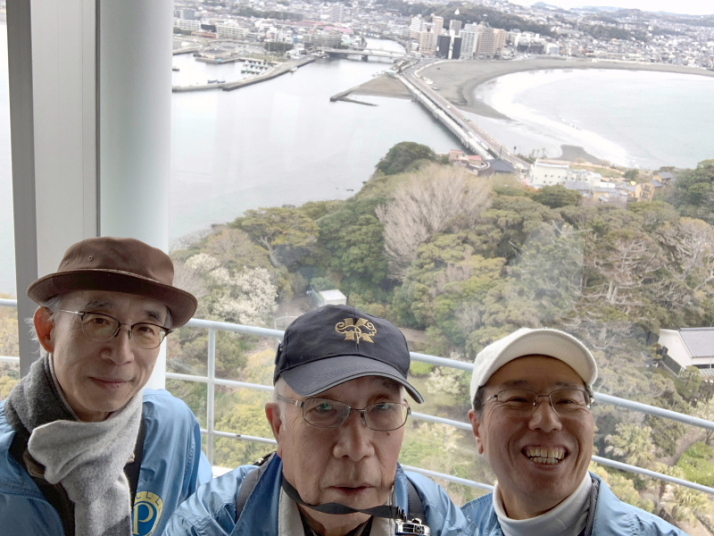 懇親会終了後、有志は児玉神社参拝など江の島を散策し(岡部会長、神谷幹事、関口、松本、田村、荻原各会員ほか)、展望灯台頂上まで行った会員もありました(神谷、関口、荻原;ラインで配信済)。16時、丸だい仙水に再集合し、懇親会続行組共々解散しました。