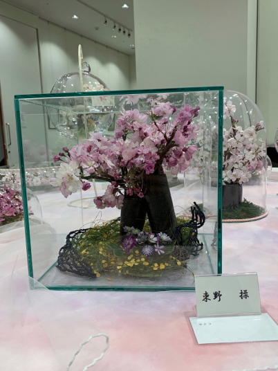 4月の展示会に共ない、桜の花のコーナーを設け皆んなで作品作りを頑張りました。来場者の方々は、本物の桜を見た後での会場の桜に、とても感動して下さいました。