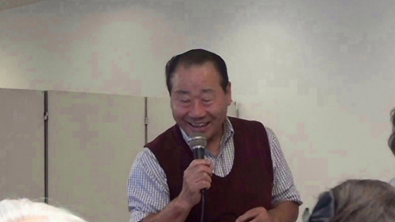 ・最後に、ライオンズクラブの例会終了時に歌われる唄を、披露します(ご自身の美声で独唱)。