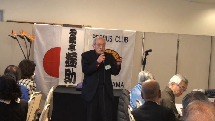 久しぶりに皆さんに会えてうれしいです。去年は、入院、手術して、歩けるようになった。年賀状はこれから書くのでよろしく。正月、年賀状がたくさん来て、鈴木国彦さんが丹波哲郎に似ていると家族が言っていた(そうかも知れない)。白いダイフクをクウかい(空海)、などと駄洒落を言ったりして、皆可愛い。ひ孫3人も来て、いい正月だった。この会は楽しい。元気になる。今年もよろしく。