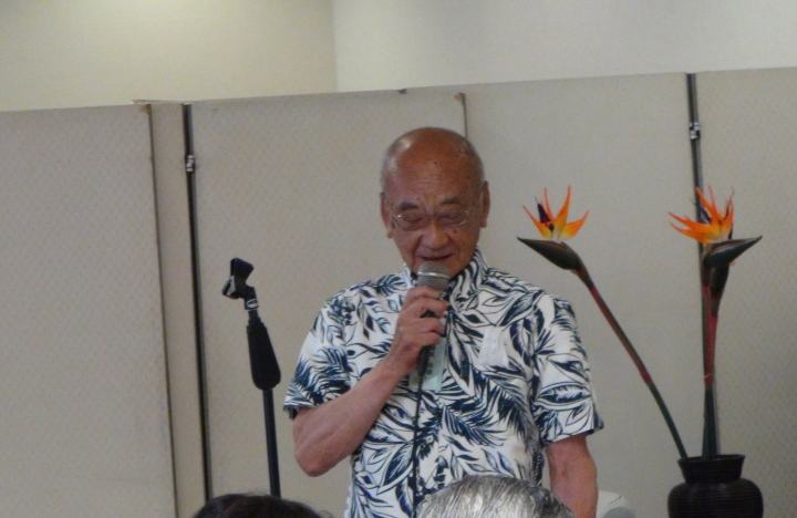 皆様暑い中ご出席いただき、ありがとうございます。いい加減(良い加減?)に生きてきましたが、間もなく80歳になります。癌や椎間板狭窄症になり、医師には見放されましたが、お金も使わず自力で生き延びました。いつでも相談に乗ります。またコロナがぶり返していますが、負けずに楽しくやっていきましょう。