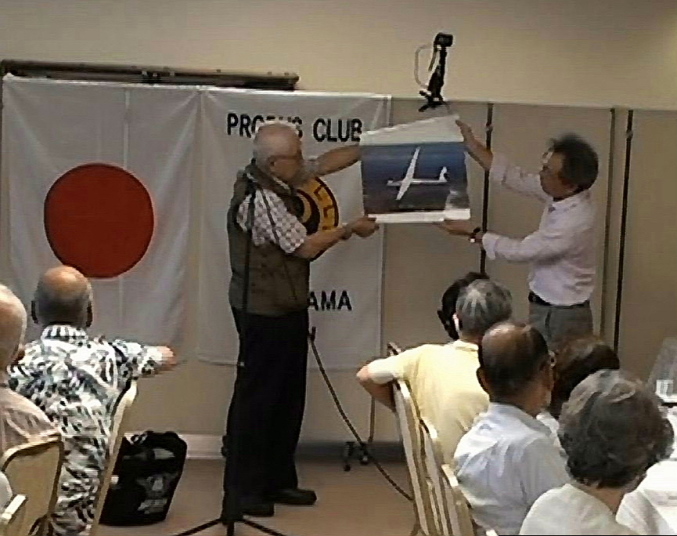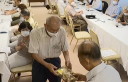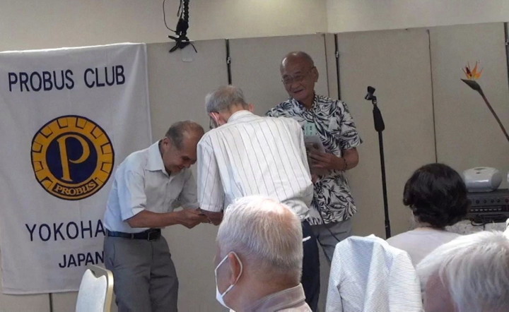 7月誕生の關会員と束野会員の2名に内山会長からお祝い贈呈。