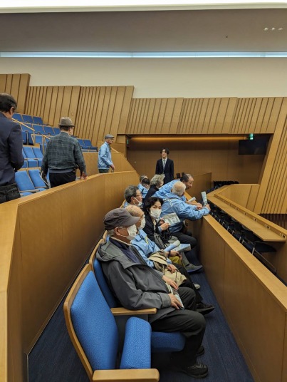 聴覚障害者や車椅子利用者、親子も利用しやすいユニバーサルデザイン採用の傍聴席はじめ、議長席、市長席などの案内もして頂だいた。みなとみらいが一望できるロビーで