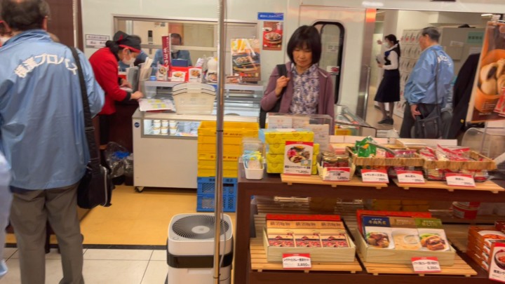 シュウマイ弁当 並びにシュウマイの製造工程の見学と駅弁100年の歴史を学び、終了後出来立てのシュウマイを試食した。会員は記念品売店で崎陽軒の各種製品(当店限定品もあり)を購入、見学終了となる。