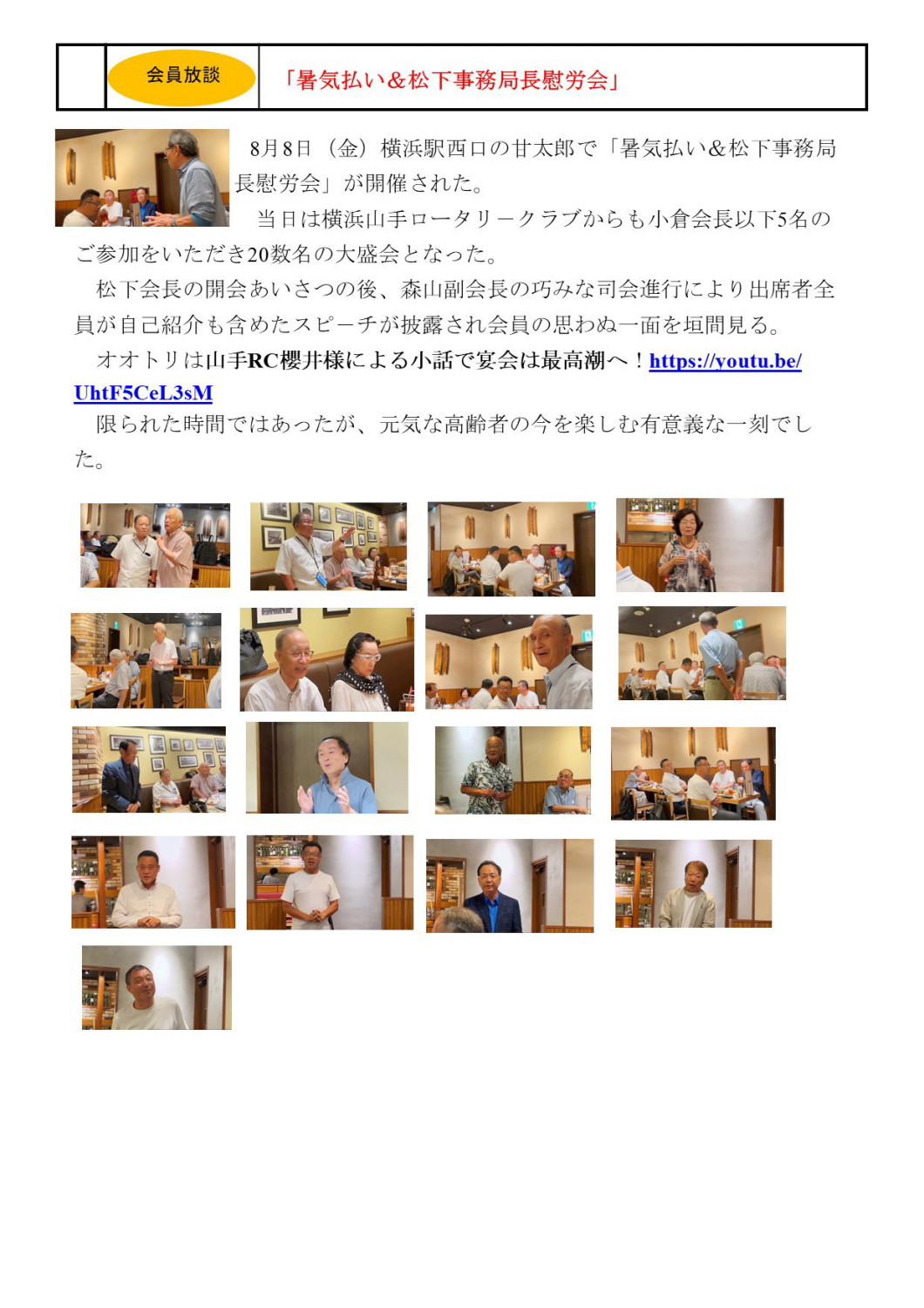 8月8日(金)横浜駅西口の甘太郎で「暑気払い&松下事務局長慰労会」が開催された。